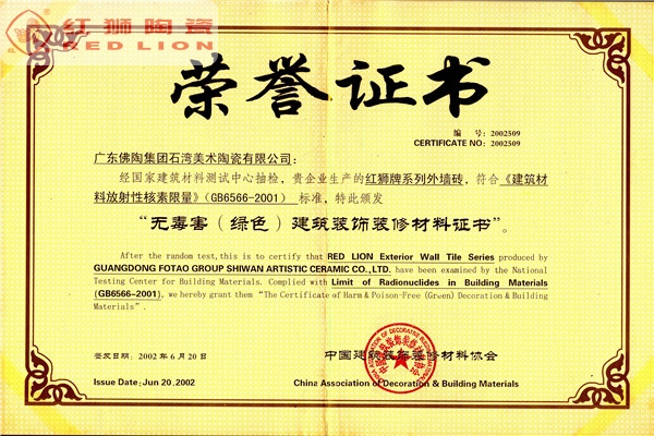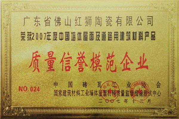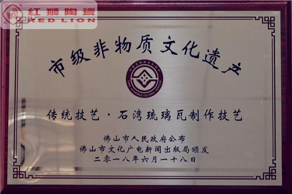 我司是廣東省內(nèi)唯一擁有“非物質(zhì)文化傳承”技藝的建材陶企,曾連續(xù)14年被評(píng)為廣東省重合同守信用企業(yè);1999年起持續(xù)通過(guò)ISO質(zhì)量管理體系認(rèn)證、ISO環(huán)境管理體系認(rèn)證、OHSAS職業(yè)健康安全管理體系認(rèn)證;2002年成立了經(jīng)佛山市科學(xué)技術(shù)局、佛山市發(fā)展計(jì)劃局、佛山市經(jīng)濟(jì)貿(mào)易局認(rèn)證的佛山市工程技術(shù)研究開(kāi)發(fā)中心;2003年“紅獅”牌獲選廣東省著名商標(biāo);2005年被佛山市知識(shí)產(chǎn)權(quán)局授予佛山市知識(shí)產(chǎn)權(quán)示范企業(yè);2008年被廣東省建筑材料行業(yè)協(xié)會(huì)評(píng)為廣東省建材質(zhì)量信用企業(yè)、廣東省建材行業(yè)節(jié)能減排優(yōu)秀企業(yè)、改革開(kāi)放30年廣東省建材行業(yè)突出貢獻(xiàn)企業(yè);2009年被廣東省科學(xué)技術(shù)廳評(píng)為廣東省民營(yíng)科技企業(yè)、高新技術(shù)企業(yè);2009-2018年被評(píng)為廣東省清潔生產(chǎn)企業(yè);2017年被廣東省循環(huán)經(jīng)濟(jì)和資源綜合利用協(xié)會(huì)認(rèn)定為廣東省資源綜合利用企業(yè);2017年作為石灣琉璃瓦制作技藝傳承保護(hù)單位列入佛山市非物質(zhì)文化遺產(chǎn)項(xiàng)目名錄;2017及2018年被授予廣東省名牌產(chǎn)品。